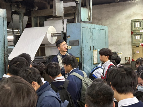 On January 22 and 23, Form 3 students visited the Ming Pao Industrial Building in Chai Wan during the school’s activity days to gain a comprehensive understanding of newspaper operations.
