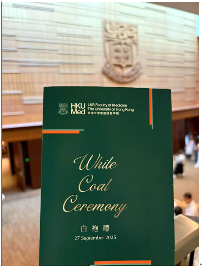 Three of our Class of 2025 graduates, Isabelle Chan, Issac Leung and Ellie Wong participated in the momentous HKU White Coat Ceremony on 27th September 2025, formally marking their admission into the prestigious MBBS programme of the University of Hong Kong.