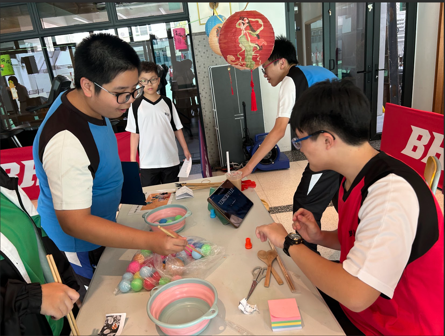 此外,中文學會與註校社工連續兩天於午休時間,在室內操場設置多個節日攤位。現場佈置了五彩繽紛的手繪燈籠,充滿傳統風情。攤位活動包括投壺、套圈及猜燈謎等經典遊戲,同學們踴躍參與,透過輕鬆互動,進一步認識中秋文化,深化對傳統節日的體會。
