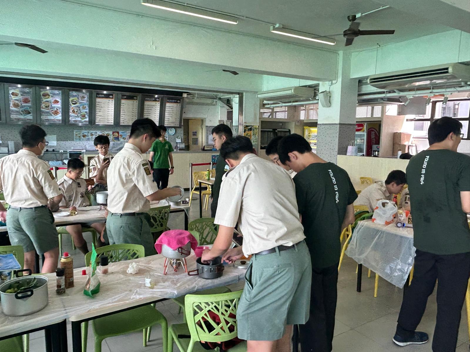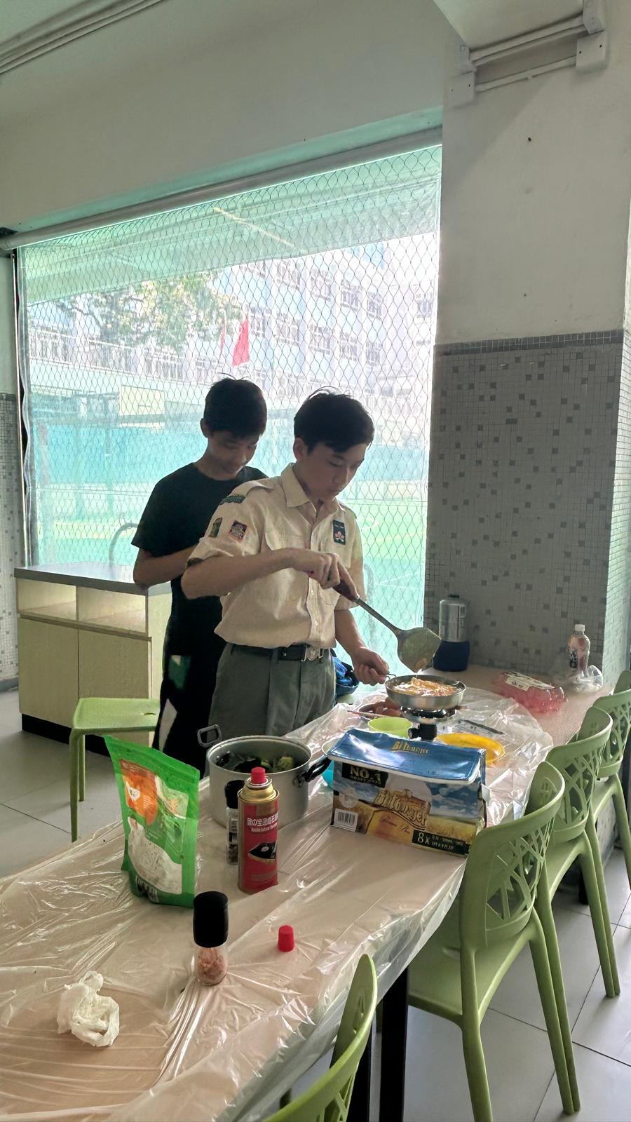 為了貫徹童軍隊伍的精神,童軍成員發起了一項自煮活動,旨在提升他們的烹飪技巧及自我管理能力。活動在星期六的訓練及集會時段進行,於學校飯堂舉行,由四支小型童軍隊伍參與烹飪比賽。參加者都樂在其中,不僅實踐了烹飪技巧,亦與隊友互相交流心得,增進合作精神。這項活動有助於培養重要的生活技能, 補足不同方面的學習,提升學生的應變力,促進學生的全人發展。