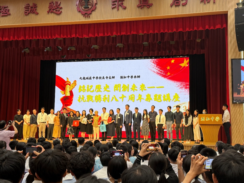 本校中五中史組的同學於10月20日下午,出席由九龍城區中學校長會主辦、創知中學承辦的「銘記歷史 開創未來─抗戰勝利80周年專題講座」。原東江縱隊港九獨立大隊老游擊戰士聯誼會會長林珍,為區內十多所中學逾700名師生講解港九獨立大隊的事跡並分享自身寶貴經歷。她強調抗戰勝利屬於廣大人民,希望同學們能夠不忘初心、銘記歷史、勇敢擔當、創造未來。