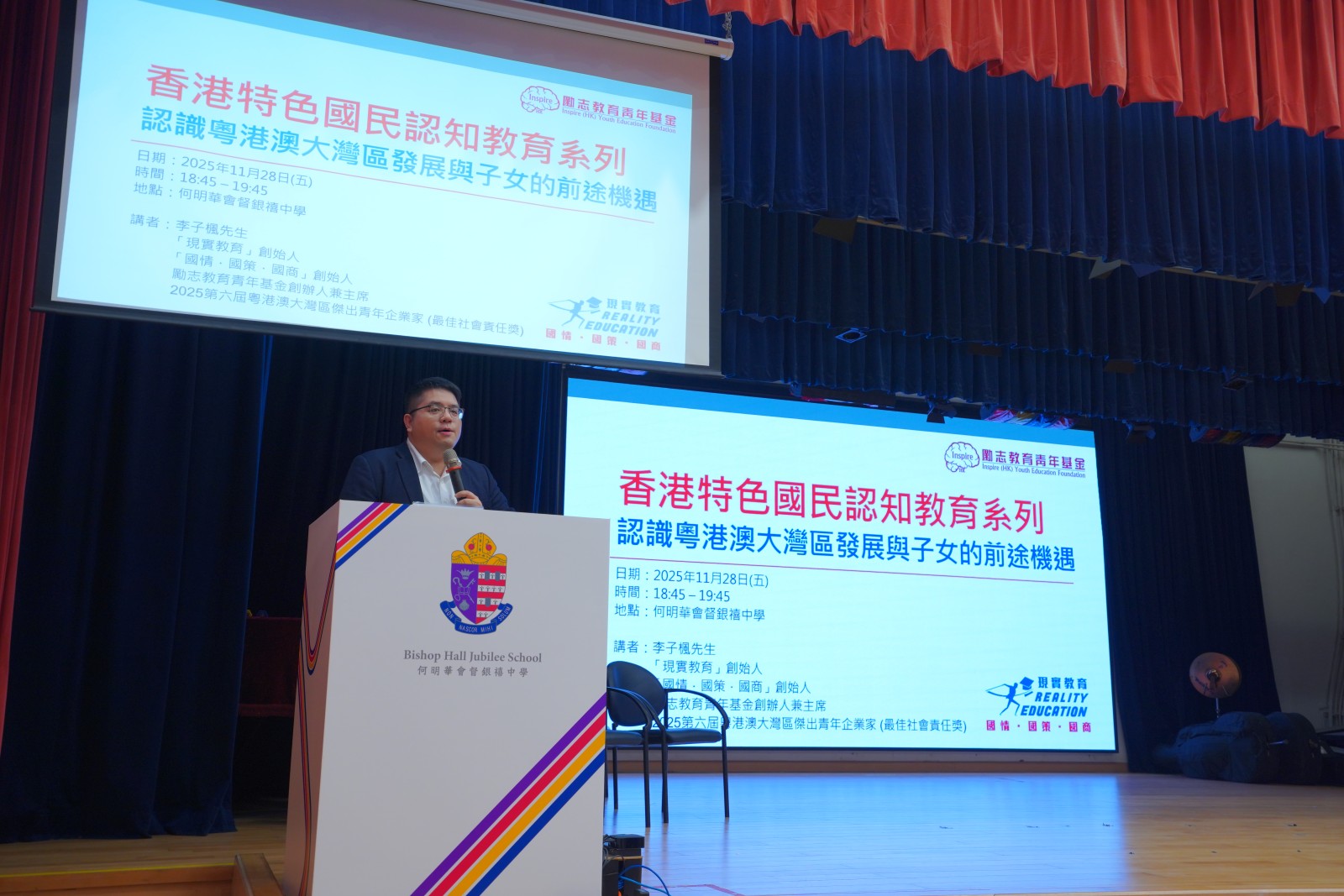 為拓闊家長與學生的視野,我們很榮幸邀請到2025年第六屆「粵港澳大灣區傑出青年企業家——最佳社會責任獎」得主李子楓先生,擔任專題講座主講嘉賓,講題為「粵港澳大灣區與子女的前途關係」。李先生深入淺出地分析了大灣區的發展趨勢,引導家長及學生思考如何將學業與職涯規劃與大灣區的宏觀發展相結合,從而以此為契機,提早裝備所需的知識與技能。