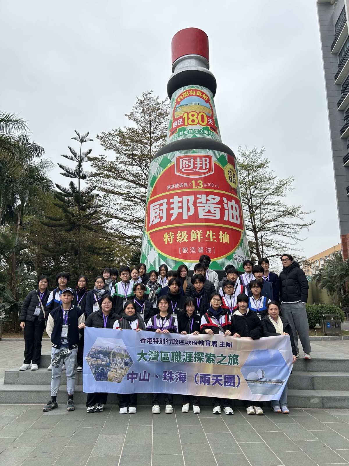為助中四學生深入瞭解粵港澳大灣區的基建新貌與創業動向,三十位中四同學及四位班主任於2026年1月22日至23日參加了教育局組織的大灣區職業探索之旅,前往中山、珠海兩地,參訪多家企業及創業孵化基地,親身感知灣區發展的廣闊前景。