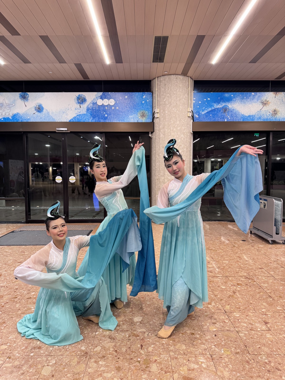 兩場演出展現了極致的東方美學:古典舞作品中,夏雨初歇,隊員們青笠半掩,水袖輕揚間如漣漪擁抱落紅,旋身蕩開整個甦醒的夏日;漢族舞作品則如春風初起,隊員化身彩蝶自花神指尖甦醒,在天地間織出流動的春天。