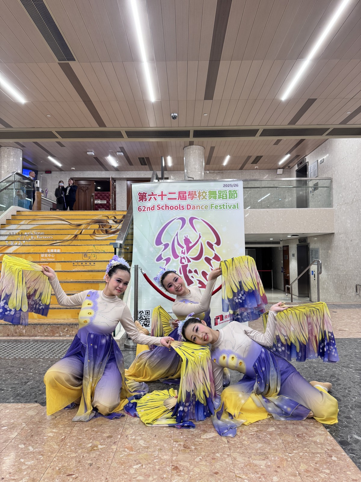 本校舞蹈隊在「第六十二屆學校舞蹈節」群舞比賽中表現出眾,憑藉兩支溫柔清新的中國舞蹈,分別榮獲一個優等獎及一個甲級獎。