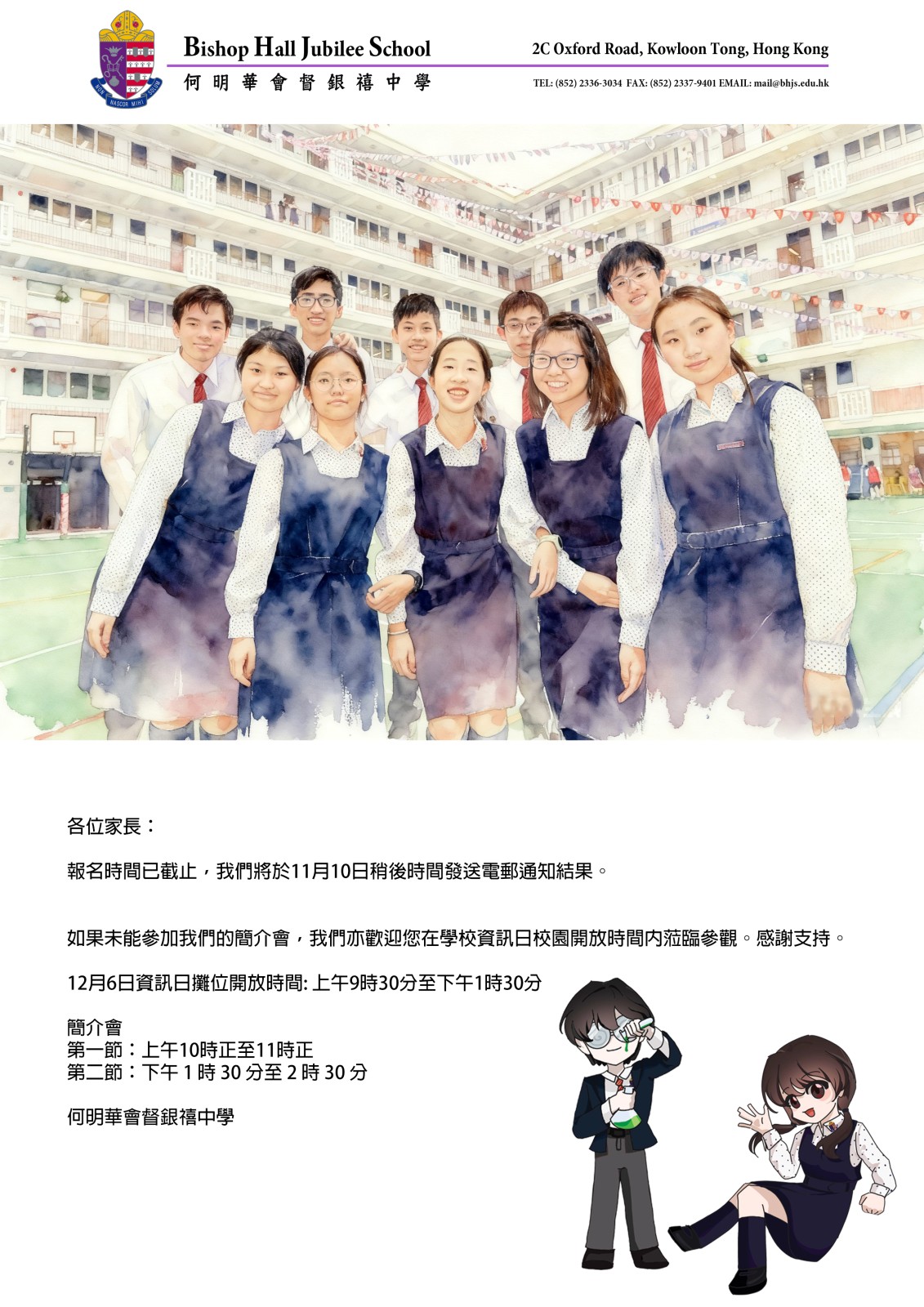 本校將於2025年12月6日(星期六)舉行學校資訊日,歡迎小學高年級學生及家長蒞臨參觀,以了解本校課程、學生活動及收生標準。